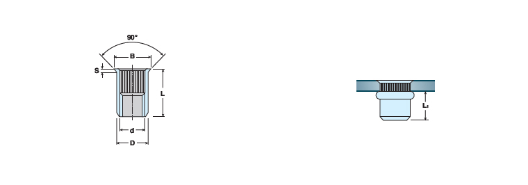 Inserti filettati a testa ridotta in acciaio inox zigrinati